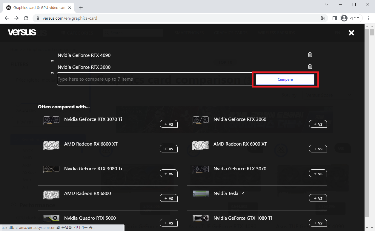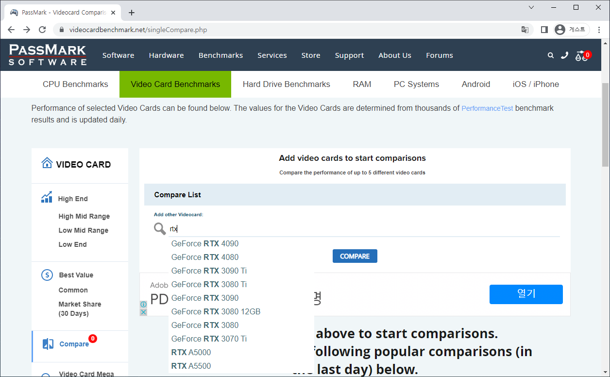 비교하고 싶은 그래픽카드 검색