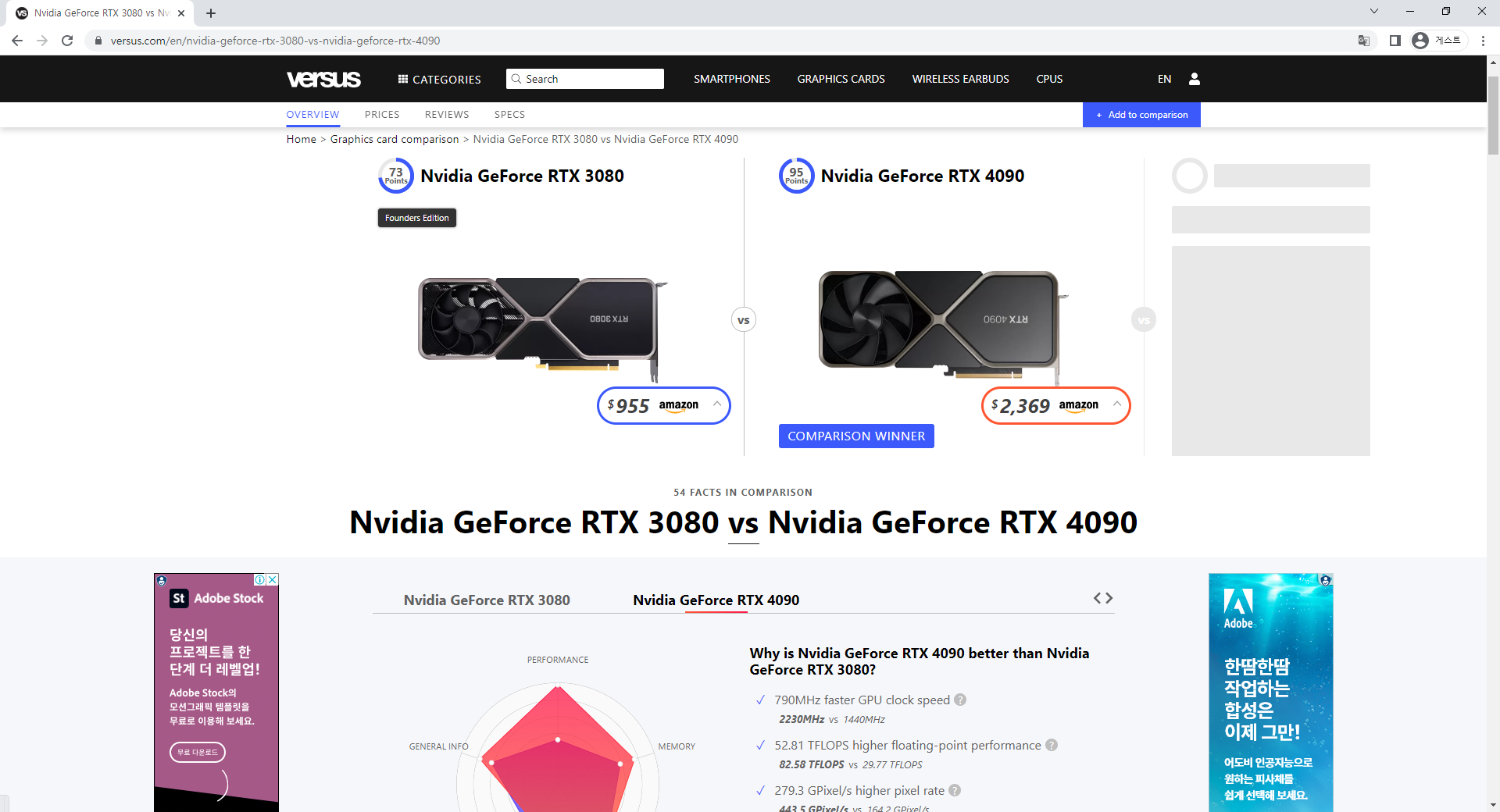 첫 번째로 Versus사이트다 그래픽 카드뿐만 아니라 다른 전자기기도 비교해볼 수 있다. 최신기기까지 잘 나와있어 가장 추천한다.