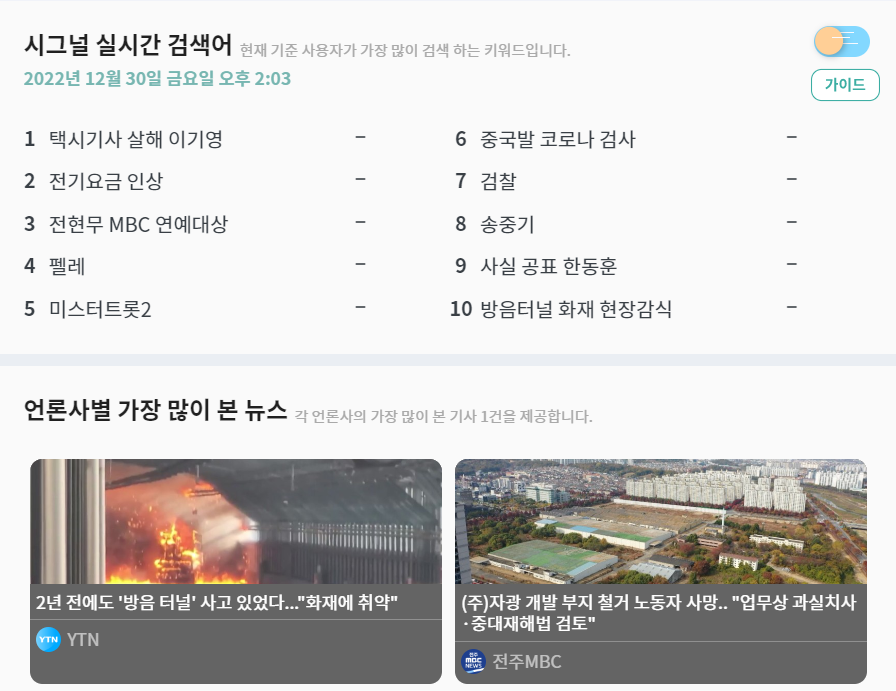 2020년도에 네이버 실시간 검색어가 폐지되었다. 이유는 여러 가지가 있었겠지만... 최근 무엇이 뜨는지 어떤 것이 이슈인지 바로바로 알고 싶으나, 찾아보기 힘들어졌다. 그래서 찾아보니 네이버에 연동해서 볼 수 있는 사이트가 있었다.